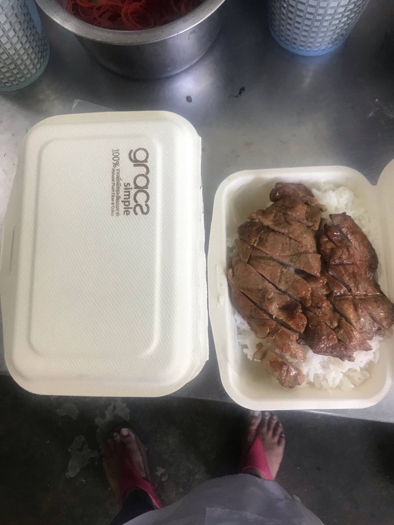 ข้าวนิ่มๆ ราดด้วยหมูนุ่มๆ พร้อมน้ำจิ้มรสเด็ด
