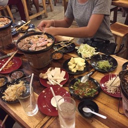33% ของรีวิวบอกว่าร้านนี้เหมาะกับ เพื่อนฝูงพาน้องไปเลี้ยงขอบคุณ น้องเลือกร้านนี้ ไอ้เราก็ไม่เคยกิน ก็เลยไปหน่อยค่ะ เป็นบุฟเฟต์ที่มีทั้งย่างกระทะร้อนและหม้อแบบจิ้มแจ่วอ้ะ (เรียกไม่ถูก) พวกวัตถุดิบต่างๆ สามารถที่จะไปตักได้ที่ไลน์เลยค่ะ เค้าจะให้สี่คนต่อหม้อหรือกระทะ 1 ชุดนะคะ เนื่องจากไม่มีจำกัดเวลาก็เลยโอเค แต่ถ้าจำกัดเวลาการให้เตา/หม้อแบบนี้ถือว่าทำให้ย่างกินไม่ทันค่ะ มันย่างได้ทีละน้อยๆ ง่ะ ตัวเนื้อต้องสั่งต่างหากนะคะ จะไม่มีในไลน์ค...อ่านต่อ
