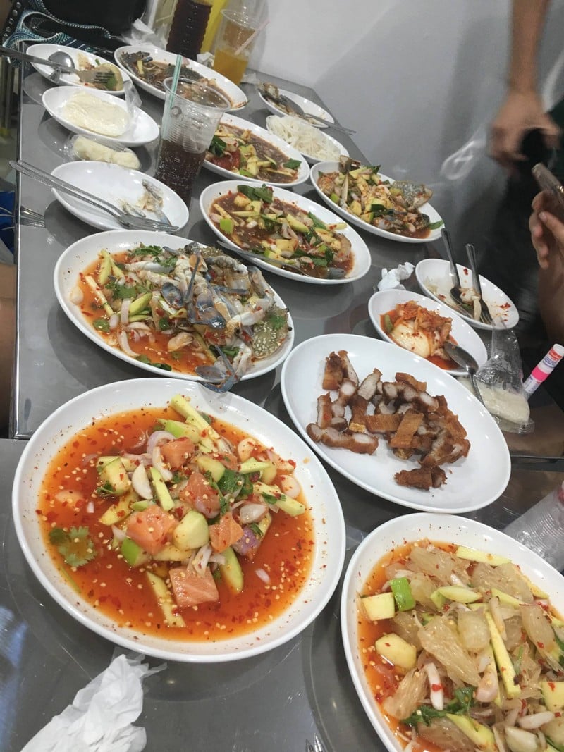 ส่วนตัวชอบยำหมูยอ หมูยอร้านนี้เนื้อแน่นๆ ไม่มีแป้ง เค้าใช้หมูยอดีมากๆเลย คุ้มราคากับคุณภาพและรสชาติ อีกเมนูมึงที่อยากแนะนำคือยำสวิงกิ้ง ร้านนี้ใช้วัตุดิบสดมากเห็นบอกว่าอาหารทะเลมาตากสุราษฎร์ สดจิงๆเลยค่ะ ปูม้าเนื้อแน่นตัวใหญ่รสชาติหวาน กุ้งสดๆเนื้อแน่นตัวใหญ่เหมือนกันค่ะ และที่สำคัญปกติเป็นคนไม่ทานหอยแครง แต่หอยแครงที่นี่ตัวใหญ่ไม่คาวเลย ทานคู่กับน้ำยำเข้ากัน และที่ชอบคือน้ำปลาร้าที่นี่นัวไม่มี...อ่านต่อ