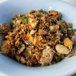 ร้านคั่วไก่เจ้าเด็ดอีกร้านที่ต้องมาลอง คั่วไก่ป้าเพียร ตั้งอยู่ริมคลองหลอดวัดราชบพิธ ขายเมนูคั่วไก่ทุกเส้น เส้นใหญ่ เส้นเล็ก เส้นหมี่ขาว บะหมี่เหลือง ทำได้ทุกอย่างเลย คั่วเส้นใหญ่พิเศษ (70.-) ก๋วยเตี๋ยวคั่วของที่นี่ใช้เตาถ่าน คั่วด้วยกระทะทองเหลือง ทำให้ตัวเส้นจะมีกลิ่นคั่วกระทะหอมๆติดมาด้วย ส่วนตัวเครื่องในชามจะมีไก่ หมูแดง ปลาหมึกกรอบ ทีเด็ดคือกากหมูสูตรป้าเพียรที่โรยทั่วจาน กากหมูเค้าทอดม...อ่านต่อ
