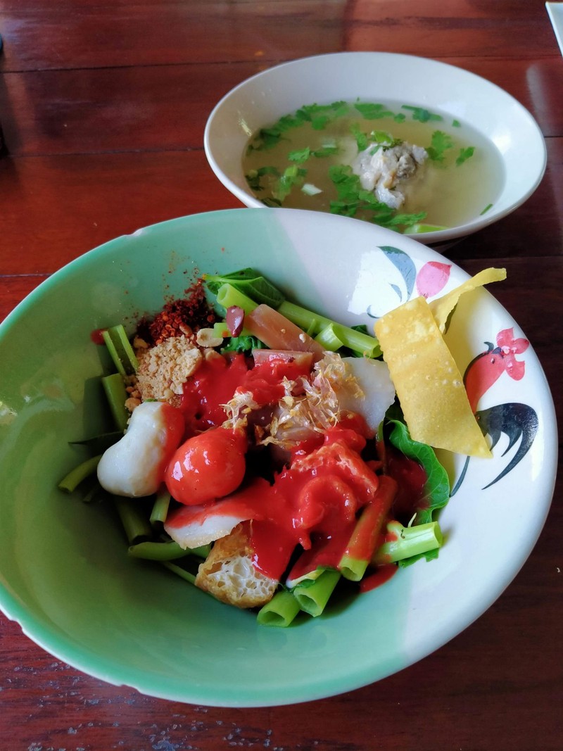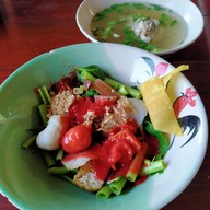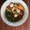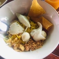 เป็นร้านที่ถ้าไม่สังเกต อาจจะเลยกันได้ง่ายๆ แต่ยังคงมีกลุ่มลูกค้าเหนียวแน่น สังเกตจากปริมาณรถตอนเที่ยงที่จอดแน่นริมถนนหน้าร้านทุกวันครับ ทีเด็ดของร้านนี้ คือ สารพัดลูกชิ้นปลาครับ จานแรกที่สั่งเป็นบะหมี่ต้มยำแห้ง รสชาติกลมกล่อม ลูกชิ้นปลาไม่คาว นุ่ม เด้ง นิ่ม อร่อย ลูกชิ้นกุ้งก็เข้มข้น ถ้าสั่งแบบแห้งร้านจะเสริฟน้ำซุปมาให้ด้วยอีกถ้วยใหญ่เลยครับ ชามถัดมาเป็น บะหมี่เย็นตาโฟต้มยำ รสชาติกลมกล่อม ไม่เ...อ่านต่อ