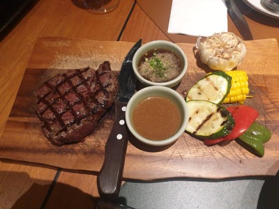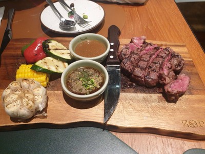 เริ่มจาก Oyster หวาน สด เป็นออเดิร์ฟที่ดี เมนูอาหารญี่ปุ่นก็มีด้วย ให้ความรู้สึกหลากหลายดี จบที่สเต็กเทนเดอร์ลอย กริลมาได้หอมกำลังดี อุปกรณ์มีดหั่นสเต็กหนักและใหญ่ดีค่ะ โดยที่ร้านมี 2 ชั้น ให้เลือกนั่งชิลได้ดูเพิ่มเติม