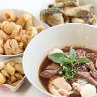 แวะไปตลาดบางใหญ่หาร้านนั่งทานง่ายๆ เห็นร้านก๋วยเตี๋ยวเรือติดแอร์มาเปิดใหม่ ไซส์โอ่โถง ดูสะอาด นั่งสะดวก เลยแวะทานจ้า ก๋วยเตี๋ยวที่นี่มีทั้งชามเล็ก ใหญ่ และพิเศษ เราสั่งหมูตุ๋น ซึ่งมีแต่ชามพิเศษราคา 50 บาทค่า พอยกมาเสริฟ เค้าให้เครื่องมาแน่นดี ตับแบบชิ้นใหญ่ๆ สี่ชิ้น ลวกมานุ่มไม่กระด้าง หมูตุ๋นโอเคใช้ได้ ลูกชิ้นอีกสามลูก น้ำซุปเข้มข้นมากก แบบควรชิมก่อนปรุง ปริมาณชามพิเศษ สำหรับเราคือ...อ่านต่อ