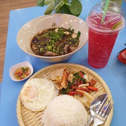 ก๋วยเตี๋ยวเรือผูกโบว์ ตลาดบางใหญ่ ร้านก๋วยเตี๋ยวเรือ ที่ขายข้าวกะเพรา เล้งต้มแซ่บ ฯลฯ เปิดบริการ 11.00-21.00 น. ก๋วยเตี๋ยวเรือหมูน้ำตก ไม่มีเนื้อวัว สั่งเกาเหลาพิเศษน้ำตก (60) เกาเหลาน้ำตกเข้มข้นดี พริกน้ำส้มเป็นเอกลักษณ์ของร้าน ใส่ในน้ำซุป แต่ติดหวานนิดนึง ลูกชิ้นหมูใช้ได้ หมูสดหมักได้นุ่ม หมูตุ๋นอร่อย ตับเนียน ข้าวกะเพรามีตั้งแต่จานเล็กจนถึงถาดยักษ์ สั่งข้าวกะเพราทะเล ธรรมดา (99) แถมไข่ดาว...อ่านต่อ