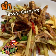เราสั่งยำมะม่วงปลากรอบ และยำมะม่วงปูจืด แบบกลับบ้าน แยกน้ำยำ ราคาถุงละ 60 บาท รสชาติพอใช้ ความเผ็ด และความนัวพอใช้สามารถเพิ่มท้ปปิ้งเพิ่มเติมได้ 20 บาทร้านเปิดช่วงเย็น ร้านสะอาดมีที่จอดรถหน้าร้านเลยคะดูเพิ่มเติม