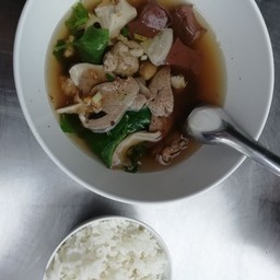 100% ของรีวิวบอกว่าร้านนี้เหมาะกับ หิวโซร้านนี้เป็นอีกหนึ่งร้านนะที่กะว่าจะแวะมาทาน จนหลายรอบล่ะ ก็ลืมทุกที แต่รอบนี้หาเวลาช่วงฝนตกมาทานได้แฮะ ร้านอยู่ในปั๊มบางจากแพรกษา ก่อนถึงปากซอยแพรกษา 11 อยู่ติดร้านชอบชา เป็นร้านเล็กๆ เหมือนจะมีสาขาที่อื่นด้วยนะ มีขายทั้งเกาเหลาเลือดหมู ตือฮวน ก๋วยเตี๋ยว ลองทั้งเกาเหลาเลือดหมูกับก๋วยเตี๋ยว รสชาติถือว่าดี ไม่ต้องปรุงทั้ง 2 เกาเหลาอร่อย เครื่องในไม่เหม็น ก๋วยเตี๋ยวลูกชิ้นอร่อยดีดูเพิ่มเติม