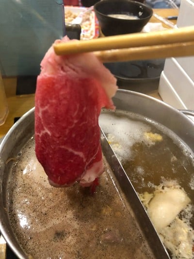 🐄 เนื้อโอเคร ไม่เหนียว แต่ร้านนี้น้ำซุปสุกี้ยากี้ (น้ำดำ) ดี เอาเนื้อแก่วงในน้ำซุปสุกี้พอสุก จิ้มไข่ดิบ เข้ากันดี 🐷 ใครทานหมู เนื้อหมูเค้าก็มีให้เลือกหมูหลายแบบเหมือนกันนะ เยอะเลย มีแบบชาบูด้วย หม้อแบ่งครึ่งเลือกได้2น้ำ มีให้เลือก 9 แบบ น้ำจิ้มมีพอนสึ มีน้ำจิ้มสุกี้ ผักเยอะ สดดี แต่ของหวานธรรมดามา ถ้าปรับปรุงหน่อยจะดีมากเลยค่ะดูเพิ่มเติม