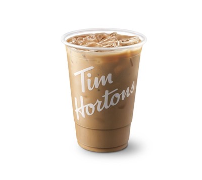 กาแฟเอสเปรซโซ่ผสมนม สามารถเลือกเพิ่มน้ำเชื่อมกลิ่นต่าง ๆ ได้ (วานิลลา คาราเมล เฮเซลนัท หรือเมเปิ้ล) เสิร์ฟพร้อมน้ำแข็ง "หากต้องการแยกน้ำแข็งกรุณาระบุในโน๊ต"