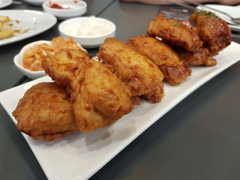 ที่สนามบินนานาชาติพนมเปญ มี Bonchon อยู่ด้วย พวกเราเดินดูร้านอาหารแถวๆนั้นแล้วสรุปมาจบลงที่นี่ เมนูบางอย่างจะไม่มีที่ไทย อย่าง wrap, burger, garlic fries, calamari เราสั่งไก่มาทั้งแบบปีก น่อง ไม่มีกระดูก รสชาติโดยรวมที่ไทยอร่อยกว่าหน่อยๆ ราคาก็ไม่ต่างกัน โดยรวมโอเคอยู่นะดูเพิ่มเติม