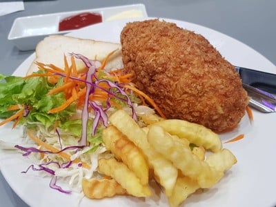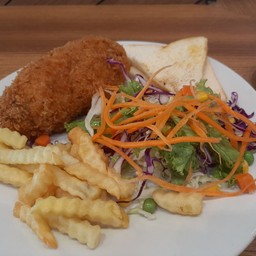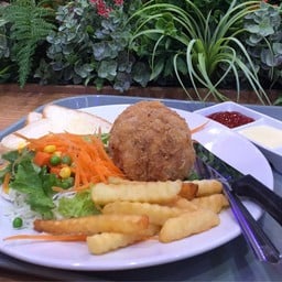 ร้านสเต๊กสามย่านเจ้าดัง มาเปิดสาขาในฟู๊ดฮอลล์สามย่านมิตรทาวน์ด้วย ดูสะอาดน่ากินดี มีของทอดที่ทอดแล้วล่อตาล่อใจอยู่ เราสั่งกอดองเบลอหมู แต่ได้ไก่มา พอผ่าถึงเพิ่งรู้ตัวค่ะ ก็กินๆไป ไซส์นี่คือใหญ่คุ้มสุดๆ มีพร้อมเฟรนฟรายส์ และสลัด ส่วนซอสมะเขือเทศกับน้ำสลัดนี่บีบเองตามใจชอบได้เลย รสชาติไก่ออกจะจืดไปหน่อย ยิ่งชิ้นใหญ่ๆแบบนี้กินแล้วเบื่อไปหน่อย แต่ก็กรอบนอกร้อนๆดี เรื่องบริการ เสิร์ฟช้าไป เค้าแยกห...อ่านต่อ