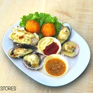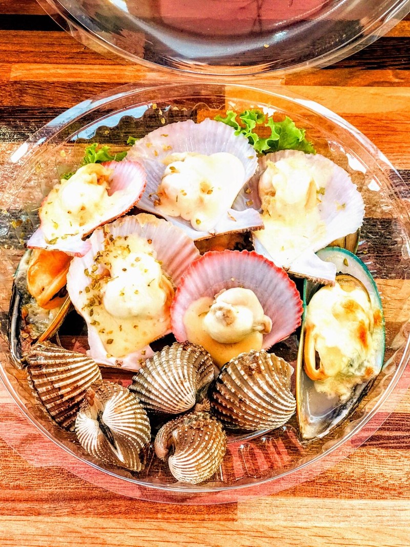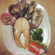 แซลมอนย่างเกลือ/ หอยรวมเนยกระเทียม