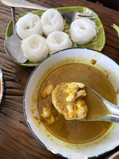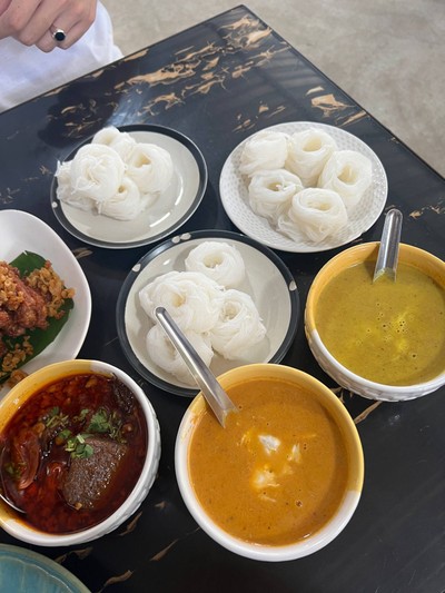 ร้านขนมจีนเส้นสดร้านดังพัทยา ที่คนรอคิวแน่น เมนูขนมจีนได้ลองน้ำยาปูทั้งสูตรปักษ์ใต้ และสูตรปกติ อร่อยเลยทั้งคู่ วันที่ไปผักค่อนข้างมีน้อย แต่ก็โอเคอยู่ น้ำยาที่บ่าชอบเลยมันบ่าได้ คือน้ำเงี้ยว 🥲 กินไปรู้สึกคล้ายน้ำพริกอ่อง แหะๆ และจ๊อปูก็อร่อยมาตรฐาน ปูเยอะพอใช้ ✅ recommended menu! คือ ไก่ทอดใบเตย ดีมากกกกกก กินกับขนมจีนน้ำยากะทิต่างๆ เข้ากัน ชอบมาก และอีกเมนู คาราเมลโทสต์ คือดี คือใช่ หอมอร่...อ่านต่อ