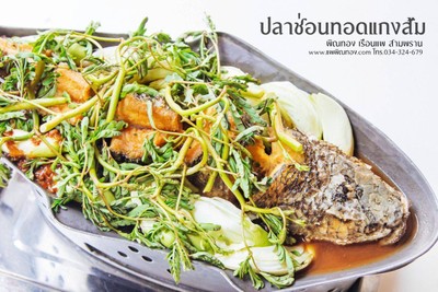 พิณทอง เรือนแพ กุ้งเผา ตั้งอยู่ด้านหลังที่ว่าการอำเภอสามพราน เป็นแพอาหารริมแม่น้ำท่าจีน แห่งแรกของจังหวัดนครปฐม ที่เปิดมานานกว่า 20 ปี ภายในร้านตกแต่งแบบเรียบง่าย อากาศร่มรื่นเย็นสบาย รับลมยามเย็นเหมาะแก่การรับประทานอาหารเป็นอย่างยิ่ง จากตัวเมืองนครปฐม ใช้ถนนเพชรเกษม มุ่งหน้าไปทางอำเภอสามพราน ผ่านฟาร์มจระเข้สามพราน ตรงไปจนถึงแยกสามพราน เลี้ยวขวาตรงไปประมาณ 2 กิโลเมตร จะเห็นที่ว่าการอำเภอสามพรา...อ่านต่อ