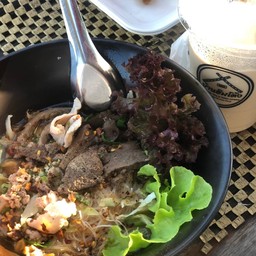 33% ของรีวิวบอกว่าร้านนี้เหมาะกับ ครอบครัวหรือเด็กร้านอยู่แถวโรงเรียนกีฬา เข้าซอยเดียวกับร้าน Dapbliw Espresso & Tea bar เลยไปประมาณ 600 เมตร ร้านกว้างขวาง มีบ่อปลาให้อาหารปลาได้ ด้านหลังร้านมีวิวทุ่งนาให้ชม ร้านนี้มีก๋วยเตี๋ยวขาย เป็นก๋วยเตี๋ยวโบราณ รสชาติออกหวาน ไม่อร่อย ไม่มีเครื่องปรุงประจำโต๊ะ ทานเกือบหมดเครื่องปรุงกำลังเอามาให้ อันนี้ต้องปรับปรุง ชามะนาวปั่น รสชาติไม่เท่าไหร่ สีส้มเข้มจนแปลกใจ มีกลิ่นมะนาวขึ้นมานิดๆ ดาร์คโกโก้ รสชาติไ...อ่านต่อ