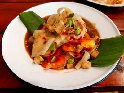 ... ร้านนี้อยู่ในซอยเล็ก ๆ เข้าไปในรีสอร์ท เดอะครีก ร้านไม่ได้ใหญ่โตนัก แต่ดูสะอาด น่านั่ง ได้รับรางวัล มิชลิน ไกด์ 2023 ด้วยนะ อาหารอร่อยดีครับ 🤩🤩🤩 . . . ตำหลวงพระบาง จานนี้ลงตัวกลมกล่อมดีมาก มะละกอแผ่นบาง ๆ กับเครื่องต่าง ๆ เข้ากัน อร่อย 😊 ... คอหมูย่าง เนื้อหมูดีมาก ไม่ค่อยมีมัน นุ่ม ย่างมาดี ทานเปล่า ๆ หรือใช้น้ำจิ้มก็อร่อยทั้งคู่เลย 😊 . . . ต้มแซ่บบ๊วยหมูสับ รสแซ่บกลมกล่อมกำลังดี ห...อ่านต่อ