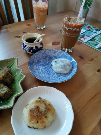 หลังจากที่ไปต่อคิวกุยช่ายหนุ่มผมยาวแล้วไม่ได้กิน เลยมาซื้อกุยช่ายร้านนี้กลับไปกินก่อนก็ได้ ทางร้านขายขั้นต่ำ 5 ชิ้น เราได้ลองไส้ เผือก หน่อไม้ กุยช่าย และไส้ผัก แป้งเหนียวนุ่ม แต่ละไส้ทำออกมาได้ดี อร่อย น้ำจิ้มรสเด็ด หวานเปรี้ยวเผ็ด กลมกล่อม กาแฟโบราณ กาแฟหวานปกติ รสชาติหวานเข้มกำลังดี กลิ่นหอมกาแฟโบราณเป็นเอกลักษณ์ดูเพิ่มเติม