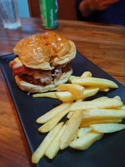 ร้าน Burger & Beer ที่เหมาะกับการมานั่งชิวๆ บรรยากาศดี เคยมาฟลายครั้งประทับใจทุกเมนู วันนี้ลอง ##Bacon Bad & Curly Fries. คือเนื้อดีย์มา ชุ่มฉ่ำ และเบคอนกรอบบ ##แตงกวาดองก็ดีย์ FB:กินเที่ยวไม่ซ้ำ จำที่ไม่ได้ Wongnai: กินเที่ยวไม่ซ้ำ จำที่ไม่ได้ดูเพิ่มเติม
