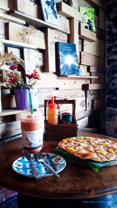 ร้านนี้เป็นร้านเล็กๆ อยู่ติดกับร้านอาหารชาติสมบูรณ์ จอดรถที่ข้างทาง ขายทั้งเครื่องดื่มและอาหาร ที่สั่งมาเป็นชาไทยปั่น รสชาติไม่เข้มข้น ออกจะจืด อีกอย่างที่สั่งมาทานด้วยคือพิซซ่าโฮมเมด รสชาติใช้ได้ แต่ไม่ได้โดดเด่นอะไรดูเพิ่มเติม