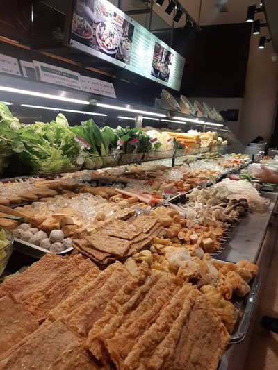ใครชอบทานอาหารประเภทนี้ ที่นี่มี นั่งสบายด้วย ของทำสดใหม่ดี เวลายืนคีบ เลือก ไม่ได้กลิ่นคาวอะไรส่งกลิ่นแรง แต่คีบไปคีบมา ก็ตกร้อยกว่าบาทนะ (บนตู้วางแผ่นป้าย บอกราคาตามสี) ต่อแถว เลือกใส่ชาม พอถึงแคชเชียร์ยื่นชามให้ เขาคิดเงิน ก็จ่ายไปแล้วแจ้งว่าจะ soup or dry or no soup with rice with noodle with yellow noodle อะไรก็ว่าไป เลือกเป็นแห้ง เพราะอยากลองทานน้ำราดของร้านนี้ แล้วก็ถูกใจ หวานๆ เค็มๆ ดีดูเพิ่มเติม