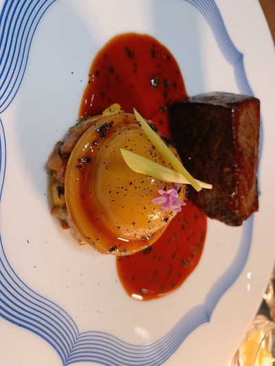 located on 1st floor of Iconluxe zone, Blue is a French modern cousine with one Michelin star. The 7 course dinner starts with several mini appetizers before crab caviar laced with gold leaves is served. Wine pairing is available for additional 1800 thb which consists of 4 glasses of regional French wine. The mushrooms upside-down with three cheeses were quite good with fruitful white win...อ่านต่อ