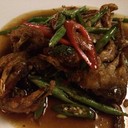 เมนูแรกที่ชิม คือ ปูนิ่มผัดกระเพรา ดูเป็นจานธรรมดา ผัดกระเพรามีถั่วผักยาวสไลด์ ปูนิ่มชุ่มน้ำซอสกระเพรา ครบรสหวานเค็ม รสเผ็ดเล็กน้อย อร่อย