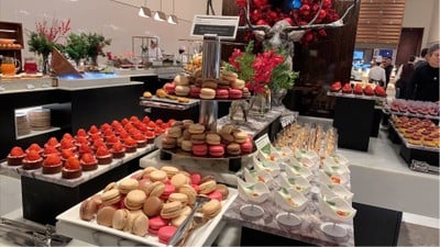 แฟนชวนไปดินเนอร์สองคนแบบสวีทๆ ที่โรงแรมเลอเมอริเดียน ย่านกังนัม ที่นี่อาหารเป็นแนวบุฟเฟ่ต์นานาชาติ ครบเครื่องทั้งคาวและหวาน และคงถูกใจสำหรับคอไวน์เพราะเสิฟฟรีตลอดเวลาที่ทานอาหาร บริการดี ไลน์อาหารเยอะมากคะ แนะนำให้เลือกที่ชอบจริงๆก่อน และค่อยทยอยชิมไปเรื่อยๆนะคะ ก่อนมาทาน ควรจองที่นั่งให้เรียบร้อยก่อนนะคะ เผื่อโต๊ะเต็มเพราะลค.ค่อนข้างเยอะเลยดูเพิ่มเติม