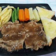 ร่มฟ้า สเต๊ก & สลัด ร้านสเต๊กและสลัด ราคาประหยัด สเต๊กเนื้อ 50 บาท ราคาดี สเต๊กเนื้อที่เสริฟพร้อมมันฝรั่ง แครอท ถั่วฝักยาว แตงกวา เนื้อสองชิ้น บางเฉียบ แต่ก็ถือว่าไม่แพง เนื้อกระด้างไปนิด มันฝรั่งทอดเอาไว้เสริฟมาเย็นๆ น้ำเกรวีรสชาติธรรมดา รสชาติ6 ราคา8 วัตถุดิบ6 ความสะอาด6 บริการ5ดูเพิ่มเติม
