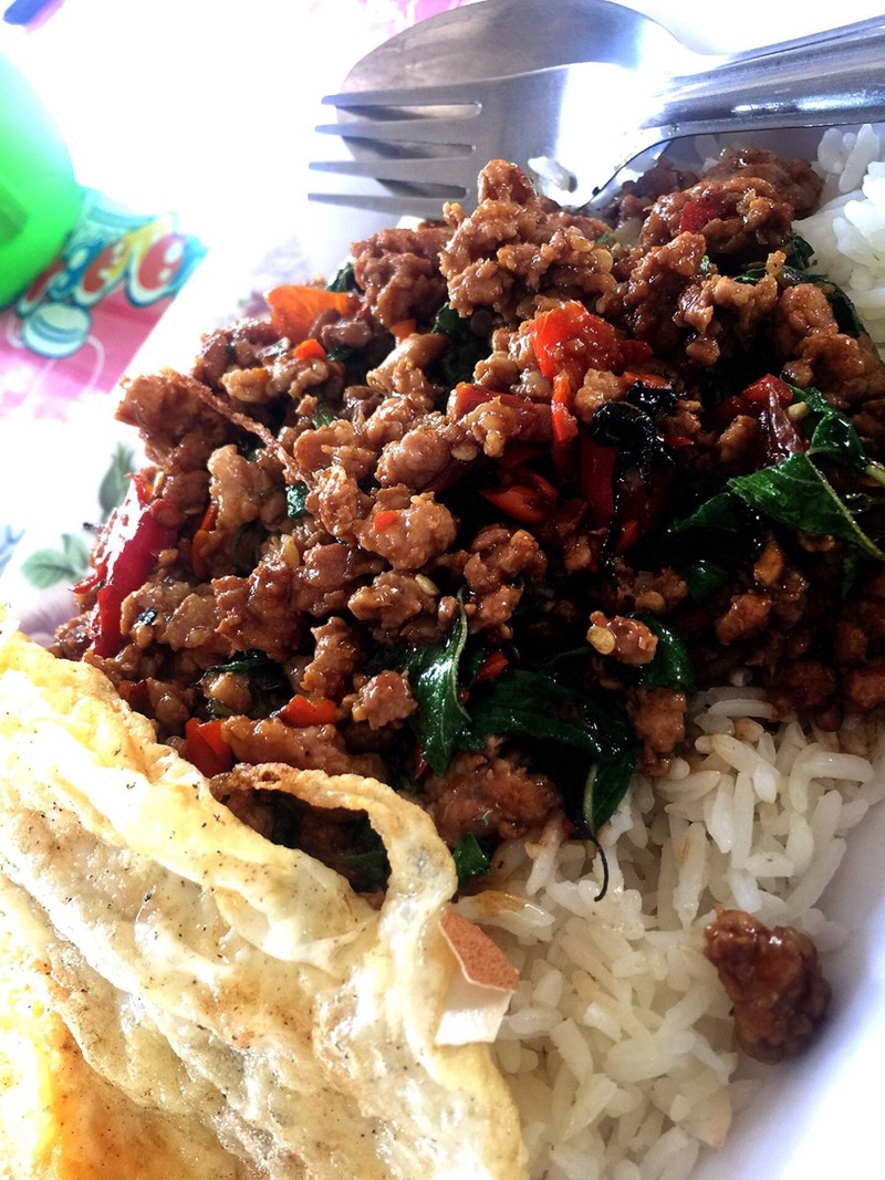 มาร้านนี้ได้เพราะ : ออกพื้นที่เยี่ยมเยียนลูกค้า เห็นใครๆ เขาก็โพทะนาว่าร้านนี้เขามีของ เลยยอมใจโดนเสกจองเข้าทองเสียหน่อยวันนี้ . สั่งอะไรมาวันนี้ : ผัดกระเพราหมูสับไข่ดาว . ความสมดุลของรสชาติของอาหาร : ไม่เผ็ด ไม่หวานจนเกินไป เติมน้ำพริกน้ำปลานิดหน่อย...ลงตัวสุดสุด . ความคุ้มของเงินกับคุณภาพของอาหารที่ได้รับ : พุงกางเพียงแค่ 35 บาท . ความน่าทานของอาหาร : กลางๆ ตามสภาพร้านริมทาง . การตกแต่งร้า...อ่านต่อ