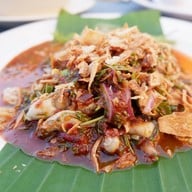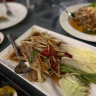 อาหารราคาค่อยข้างแพง ไข่เจียวปู ที่มีแต่เนื้อในขาปู ชิ้นเล็กๆ เป็นกากๆ คมๆ ข้าวผัดปูก็เช่นกัน เหมือนข้าวผัดไข่มากกว่า ยำหอยนางรมตัวเล็กไม่ว่า นับตัวได้เลย ใส่เครื่องยำมาปกปิดหอยนางรม มีส้มตำปลาร้าปูม้า ที่พอใช้ได้ ไม่น่าเกลียด หอยเชลล์อบเนย ถ้าคนชอบกระเทียมน่าจะถูกใจ สลัดแซลมอนผักน้อยชนิดไปหน่อย ปูไข่ดองน้ำปลา ราคาแรงรสชาติธรรมดา ถามเรื่องความคุ้มค่าของรสชาติและราคา ให้ 1 เต็ม 10 อีกเรื่องที่ท...อ่านต่อ