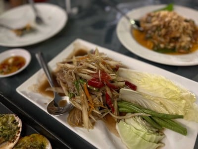 บรรยากาศดีแต่อาหารไม่ได้เรื่อง ต้มยำถ้วยละ250 ใช้เห็ดถูกๆปลาหมึกถูกๆ หอยเชลอบชีสนี่นึกว่าอบกระเทียมมีแต่กระเทียมมาท่วมเลย ราคานี้น้ำจิ้มซีฟู้ดยังจะมะนาวปลอม ไม่ได้ติดใจในเรื่องราคาถือว่าปกติของสถานที่ท่องเที่ยว แต่คุณภาพไม่ได้เรื่อง ไม่สมกับร้านที่ขายส้มตำปูปราร้า150บาทอ่านต่อ