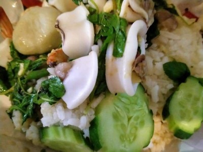 ร้านอาหารตามสั่งยามค่ำๆ หลายๆร้านตั้งอยู่ในแถวๆรอบกำแพงวัดราชธานี ให้เลือกทานกันเยอะเลย นอกจากในโซนตลาดโต้รุ่งแล้วนะ เลือกทานร้านนี้ เพื่อสั่งของง่ายๆทานได้เร็วๆ สั่งเป็นข้าวผัดพริกแกงทะเล ปริมาณเยอะพอสมควร รสชาติกลางๆนะ ทานได้ แต่ข้าวแฉะไปนิดนะดูเพิ่มเติม