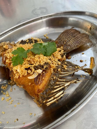 ตัวร้านต้องออกมาจากตัวเมืองนิดนึง แต่คุ้มที่จะมา ขลุ่ยปลานิล เมนูทานได้ทุกเพศทุกวัย เนื้อปลาแน่นๆ แต่ขอให้ระวังก้างนิดนึง สลับจิ้มได้ทั้งน้ำจิ้มหวานและน้ำจิ้มซีฟู้ดเพื่อเปลี่ยนรสชาด ปลานิลตัวใหญ่ที่สุดที่เคยเจอมาในชีวิต ตัวใหญ่จนแบ่งทำได้หลายเมนู พวกเราเลือกเป็นทอดกระเทียมกับนึ่งมะนาว ทอดมากรอบนอกนุ่มใน กระเทียมหอมกรอบ ราดน้ำจิ้มซีฟู้ดคือจบ ในส่วนของนึ่งมะนาวก็คือแซ่บๆเลย นึ่งมากำลังดี เนื้อ...อ่านต่อ