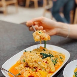 หิวโซหลังเลือกงานมาเดินห้างแถวที่ทำงาน เบื่อๆอาหารสไตล์เฟรนไชส์ เดินผ่านร้านนี้ดูเมนูหน้าร้านเจอหมูกรอบน่ากินก็เดินเข้าไปนั่งพลัน ร้านอยู่ชั้นบนของสเปล กว้างขวางสว่างไสว สตาฟสุภาพเรียกง่ายไม่มีปัญหา สั่ง “ข้าวไข่ข้นหมูกรอบพริกเกลือจิ้มแจ่ว” ข้าวสวยร้อนๆ ไข่ข้นหอมกลิ่นน้ำมัน หมูกรอบพริกเกลือกรุบๆ จิ้มแจ่วเจ้มจ้น ดีย์ โดยรวมแล้วเป็นประสบการณ์การกินอาหารจานเดียวที่ดีย์ดูเพิ่มเติม