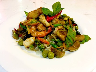 ผัดเขียวหวานแห้งทะเล