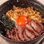 เนื้อริบอายพรีเมี่ยมออสเตรเลียนำไปย่าง เสิร์ฟพร้อมไข่ดองน้ำปลาและน้ำจิ้มซีฟู๊ด