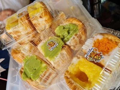33% ของรีวิวบอกว่าร้านนี้เหมาะกับ คู่รักร้านขนมปังปิ้งที่มีไส้ต่างๆ ให้เลือกหลากหลาย ราคาเริ่มต้น 20-25 บาท ครับ ผมสั่งมาหลายไส้เลยทีเดีวว แต่ได้ลองชิมแค่สังขยาใบเตย ตัวขนมปังต้องทานตอนร้อนๆ จะนุ่ม แต่พอเย็นลงจะแอบเหนียว ไส้สังขยาใบเตยเยอะ ทะลักมาก รสชาติไม่หวานมาก กำลังดีครับดูเพิ่มเติม