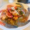 ยำอร่อย ปลาร้าหอมนัว ไม่เหม็นเลย แซลมอลดีเข้ากับน้ำยำ กุ้งแช่น้ำปลาฟินมาก น้ำจิ๋มซีฟู๊ดเข้มข้นเด็ด ราคาพอๆกับร้านในเมือง รสชาดก็ดีตามกัน ยำปลาร้ารสคล้าย af มากๆ ไม่ต้องนั่งรถไปถึงพัดยาแล้ว ยำมาม่าไฟร์ชิลลี่ อันนี้ชอบมาก ไม่เหมือนร้านไหนที่เคยกินอ่านต่อ