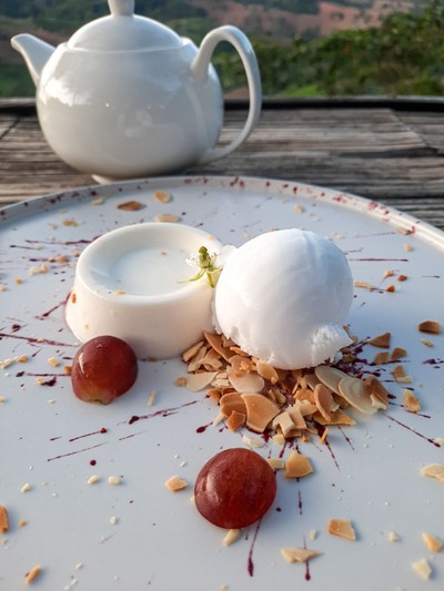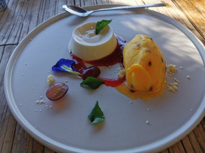 เป็นร้านที่แต่งสวยมาก มีมุมให้ถ่ายรูปเยอะ วิวก็สวยมาก วันนี้ได้ไปลองเป็นเมนูของหวาน เสียดายที่ชีสเค้กหมดแล้ว เลยได้พานาคอตต้ากับปังเย็นมา พานาค็อตต้าอร่อยมาก อยากให้ลอง เสริฟพร้อมไอศครีมเสาวรสและซอสเปรี้ยว โรยด้วยครัมเบิล เข้ากันดีมาก ปังเย็นธรรมดาๆ สั่งมาเพราะชีสเค้กหมด ของคาวไม่มีโอากาสได้กิน เห็นคนบ่นกันเยอะเหมือนกัน ไว้ถ้าผ่านคราวหน้าจะลองจัดของคาวบ้างดูเพิ่มเติม