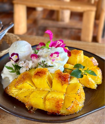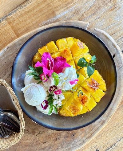 📌 มาเขาใหญ่ทั้งทีต้องไม่พลาดร้านขนมหวานร้านนี้ การันตีความอร่อยด้วย Wongnai Users’ Choice 2023 🥭 มะม่วงเป็นวัตถุดิบหลักที่นำมาเป็นเมนูของหวานอันสุดหลากหลาย ร้านเป็นอาคารไม้ 2 ชั้นกลางสวนมะม่วง ด้านล่างเป็นจุดรับออเดอร์ มีโต๊ะนั่งด้านนอก จำหน่ายสินค้า Farm shop ที่แปรรูปจากสวนมะม่วงของทางร้าน ชั้นบนนั่งรับลมชมวิวสวนมะม่วงสุดลูกหูลูกตา 🏆 เมนูซิกเนเจอร์ มะม่วงย่างเนยน้ำผึ้งหน้ากรอบ เสิร์ฟคู่ไ...อ่านต่อ