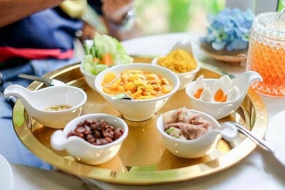 ขับรถตาม google maps มาเรื่อยๆ จะเจอร้าน หาไม่ยาก จอดรถได้ภายในบริเวณร้าน คุณลุงเจ้าของร้านออกมาต้อนรับด้วยรอยยิ้มสดใส บรรยากาศร่มรื่น ตกแต่งร้านสวยงาม มีมุมให้ถ่ายภาพ เมนูอาหารเป็นชุดๆ อาจไม่หลากหลายแต่อร่อยแน่นอน สั่งสำรับโบราณบ้านเฟื่องและชุดแกงมัสมั่น เครื่องแกงเข้มข้นหอมขึ้นจมูก ขนมเค้กส่วนตัวไม่ค่อยปลื้ม แต่ชอบวุ้นผลไม้สดและขนมหม้อแกงหน้าอาลัวสดมาก หาทานได้ยาก ชาไทยอีกเมนูที่พลาดไม่ได้ หอ...อ่านต่อ