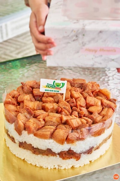 เค้กแปลกใหม่จากของหวานกลายเป็นของคาว หมูทอดดีงาม ทั้งด้านบนเป็นหมูสามชั้น ออกหวานนิดๆเค็มหน่อยๆ ใครชอบก็เปรมกันเลย ชั้นด้านในเป็นหมูทอด นุม เค็ม อร่อยเช่นกัน แถมยังมีน้ำจิ้มให้อีก เป็นน้ำจิ้มแจ่ว รสชาติออกเปรี้ยว แต่ไม่เผ็ด คงทำให้รสกลางๆกินได้ทุกคน รสเปรี้ยวก็มาตัดกับหมูที่เค็ม ถ้าเค็มหมดจะเลี่ยนเกินไป ตัวข้าวนุ่มไม่แข็ง กินเพลินเลย ถ้าใครคิดไม่ออกว่าจะซื้อเค้กอะไรดี ลองเปลี่ยนเป็นแบบนี้ดู ทั...อ่านต่อ