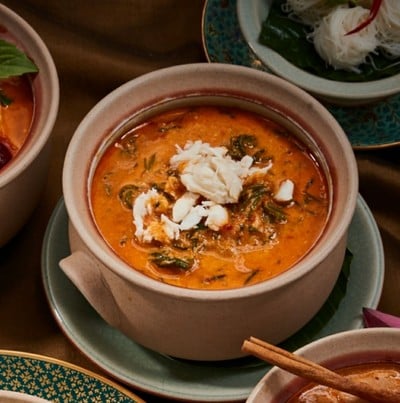อาหารไทยใจกลางสาทรที่ร้านสวยได้บรรยากาศ ตกแต่แบบฟีลไทยๆโบราณ น่าจะเหมาะพาแขกต่างชาติมาทาน คงประทับใจ อาหารไทยมีหลากหลาย ทั้งเครื่องว่าง แกง เมนูเส้น เมนูข้าวต่างๆ ไปถึงสั่งอาหารเสร็จก็มี complimentary ของทางร้านมาเสิร์ฟให้เป็น mini เมี่ยงคำ พร้อมซอสราด 🦀 แกงปูใบชะคราม มากับเส้นหมี่ 4 ก้อนเล็กๆ ตัวแกงรสชาติจัดจ้านดีเผ็ดพอประมาณ แต่เส้นหมี่ที่ให้มาน้อยไปหน่อย ก้อนจิ๋วมาก ข้าวผัดปูผักมาได้อร่อย...อ่านต่อ