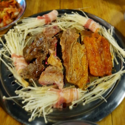 บรรยากาศร้านมาแนวเกาหลีสุดด มีความแสงไฟสลัว และเพลงชิคๆ บอกก่อนนะว่าไปหลังร้านเปิดแค่ 10 นาที คนเต็มร้านเลยจ้า ไม่ธรรมดาจริงๆ เมนูแนะนำก็ทุกอย่างแหละ🤣🤣 ชอบพวกเนื้อหมูหมัก หมูนุ่มดี เช่น หมูสามชั้นหมักซอสเกาหลี คอหมูหมักโคจูจัง หมูหมักซีอิ๊ว อีกหนึ่งรายการที่ชอบคือ พิซซ่า🍕🧀 แป้งบางและกรอบนานมาก เต็มไปด้วยชีสนุ่มๆ กินพร้อมกับหมูคือดีเลยนะ อาหารอื่นๆก็อย่างเช่น เบคอน ไก่หมักซอส ไก่ทอด ต็อก...อ่านต่อ