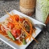 ร้านส้มตำประจำที่ไปกับครอบครัว ร้านห้องแอร์ มีที่จอดรถสบายๆ อาหารราคาแพงหน่อยแต่สะอาด รสชาติดี เมนูประจำมี 1. ส้มตำไทย รสชาติกล่อมกล่อม รสชาติครบแต่ๆม่จีดเกินไป 2. ลาบปลาดุก อร่อยมากหอมกลิ่นปลาย่าง 3. ลาบหมู อร่อยที่สุด รสออกเค็มเผรี้ยวเผ็ด หวานน้อยแบบที่ชอบเลย 4. ซุปหน่อไม้ ไม่กล้ากินข้างนอกเลยกลัวท้องเสีย ที่นี่ทำได้อร่อยนัวมากๆ ทำร้อนๆ นอกจากนี้ยังมีอาหารฝรั่งที่ชอบด้วยเช่น ผักโขมอ...อ่านต่อ