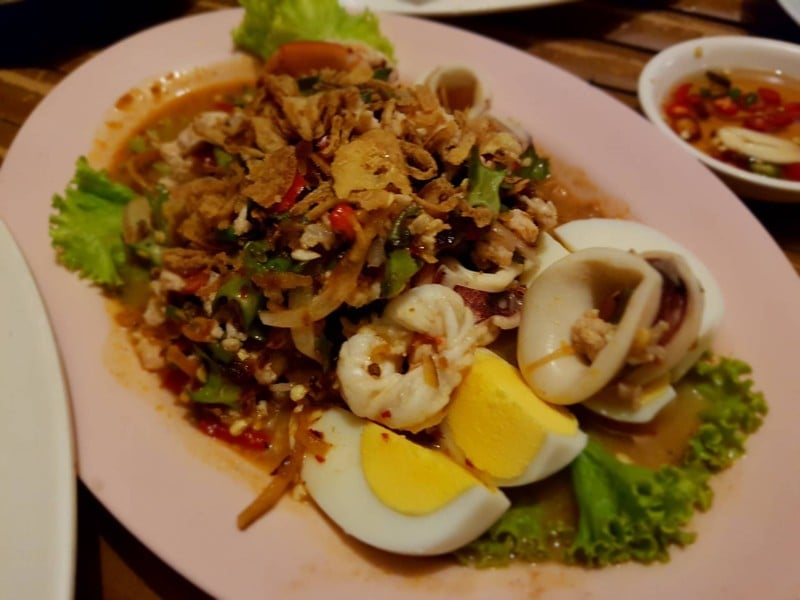 หลังจากแวะเที่ยวบางปูก็กด wongnai เพือหาร้านกินข้าวเย็น เห็นร้านนี้พอมีรีวิวเลยลองมาชิมดู - ยำผักบุ้งกรอบ ทอดมากรอบดี น้ำยำเผ็ดใช้ได้ - ปลาหมึกไข่ผัดไข่เค็ม ปลาหมึกพร้อมไข่ แต่รสชาติออกไปทางผัดน้ำพริกเผามากกว่า รสชาติก็อร่อยใช้ได้ - ปลาบึกผัดฉ่า ความเผ็ดฉ่าใช้ได้ แต่หนังปลาบึกหนาเหนียว ผมชอบกินปลาบึกแบบหนังนิ่ม ๆ มันหนา ๆ เยอะ ๆ มากกว่า ร้านนี้ไม่แนะนำให้มาหลังพระอาทิตย์ตก โดยเฉพาะถ้ามีเด็กมาด...อ่านต่อ