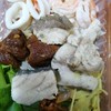 แอบมองร้านนี้นานแล้ว เพิ่งจะมีโอกาสสั่งผ่านไลน์แมนพร้อมกับการใช้โค้ดส่วนลดที่วงในแจกให้ เลือกสั่งมาสามอย่าง เป็นข้าวต้มแห้ง ที่มีน้ำซุปมาให้ด้วย กับข้าวกะเพราหมูกรอบ ดูจากภายนอกให้ข้าวมาเต็มกล่องเลย เลือกชิมข้าวกะเพราก่อน แล้วก็หายสงสัยว่าทำไมจึงให้ข้าวเยอะ เพราะรสชาติผัดกะเพราของเขานั้น รสเจ็บจัดจ้าน และข้าวก็นุ่มอร่อยดูเพิ่มเติม