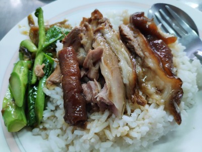 รสชาติขาหมูร้านนี้อร่อยก็ทานได้สั่งเป็นกับข้าวก็ดี ไข่ยังไม่ได้ใช้ไข่เป็ดหักไปครึ่งดาว น้ำขาหมูใสๆ เชงๆอร่อยอยู่ หนังไม่เปื่อยจนเกินไปไม่เละ กินแล้วดึ๋งๆ มี texture อร่อยดี ไส้หมูยังมีกลิ่นเล็กน้อย ยังไม่ให้ผ่าน (ควรต้องทำน้ำให้รสชาติเข้มข้นกว่านี้จะได้ช่วยกลบกลิ่นไส้หมูได้) สำหรับข้าวมันไก่ข้าวรสชาติใช้ได้อาจจะยังไม่ได้หอมมากแต่ว่าเนื้อไก่ก็นั่งมันน้ำจิ้มพอใช้ได้อร่อยแต่รถยังไม่จัดไม่มีขิงข...อ่านต่อ