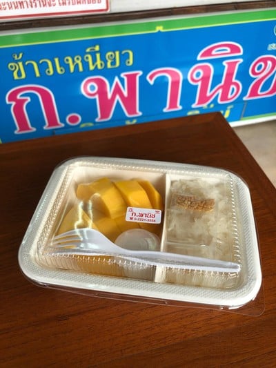 เป็นร้านข้าวเหนียวมะม่วงที่แวะมาซื้อบ่อยๆ ปัจจุบันขายอยู่ที่กล่องละ 130.- ถ้าซื้อกลับบ้านก็รอรับได้เลย หรือทานที่ร้านก็มีโต๊ะนั่งในห้องฝั่งตรงข้ามแล้ว ลูกค้าต่างชาติแวะมาเยอะมาก ต่อคิวยาว ซื้อกันคนละกล่องสองกล่องเป็นแถวเลย ที่ชอบที่สุดคือ ข้าวเหนียวมูนของก.พานิช เค้ามูนข้าวเหนียวมาได้กำลังดี ไม่แฉะ หนุบหนับกำลังดี ราดกะทิที่เค็มนำ หวานตาม และโรยถั่วทองกรอบๆไป ฟินลืมมมม ยิ่งได้ทานกับมะม่วงสุก...อ่านต่อ