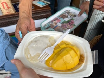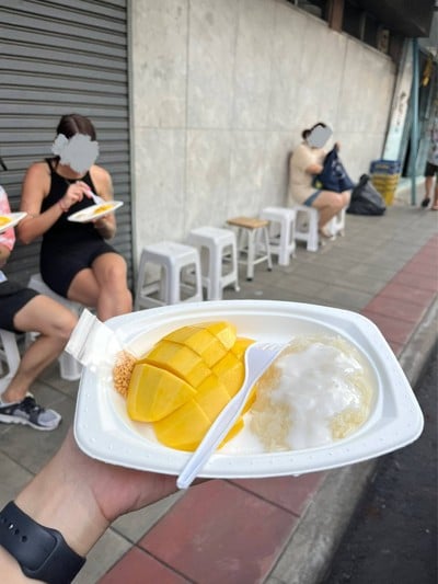 เห็นคนต่อแถวมุงกันหน้าร้านเยอะ เลยเดินแวะเข้ามาดู มีชาวต่างชาติเยอะมาก ๆๆๆ มานั่งทานกันหน้าร้าน “ก.พานิช” 📌ถนนตะนาว (ใกล้เสาชิงช้า) และหน้าร้านขายมะม่วงเยอะทีเดียว คนเยอะขนาดนี้ก็อดไม่ได้ที่จะมาต่อแถวลองกับเขาบ้าง (คนจีนหน้าร้านบอกว่ามีรีวิวเว็บจีนเลย ส่วนคนต่างชาติหลายคนที่ถามที่คุยกันตอนรอคิว เขาว่าเดินมาเห็นพอดี) ร้านไม่มีโต๊ะนะ มาเป็นจานถือทาน จะทานที่เก้าอี้🪑ที่ทางร้านเตรียมตั้งไว้เรียง...อ่านต่อ