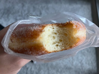 เนื้อขนมปังโดนัทนุ่มๆคลุกเคล้าด้วยน้ำตาลแบบละเอียด